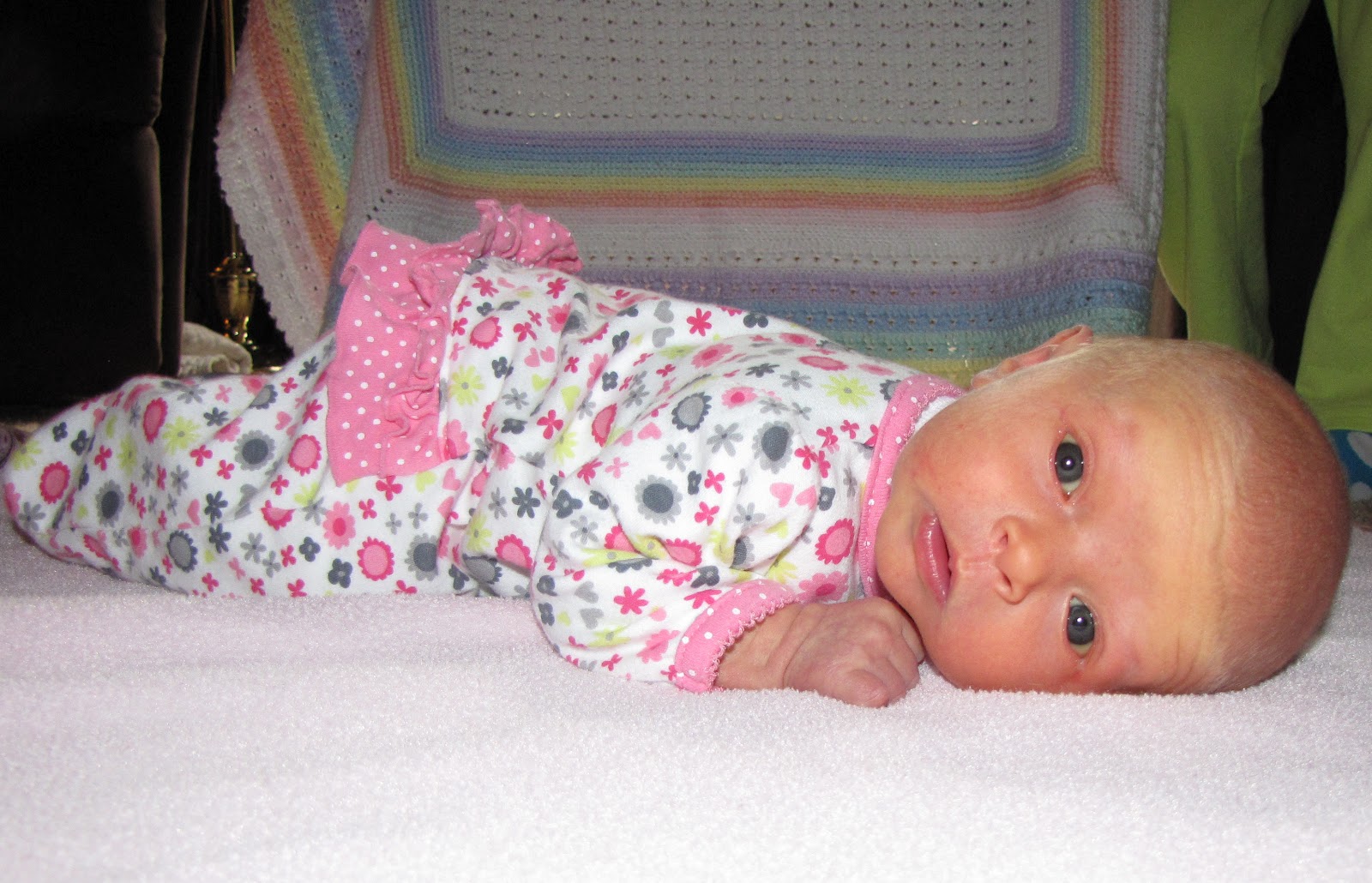 What a cutie!!! Caitlin wants a girl baby so bad. I have no doubt that she will be all over her like your girls are. Loves to you all!